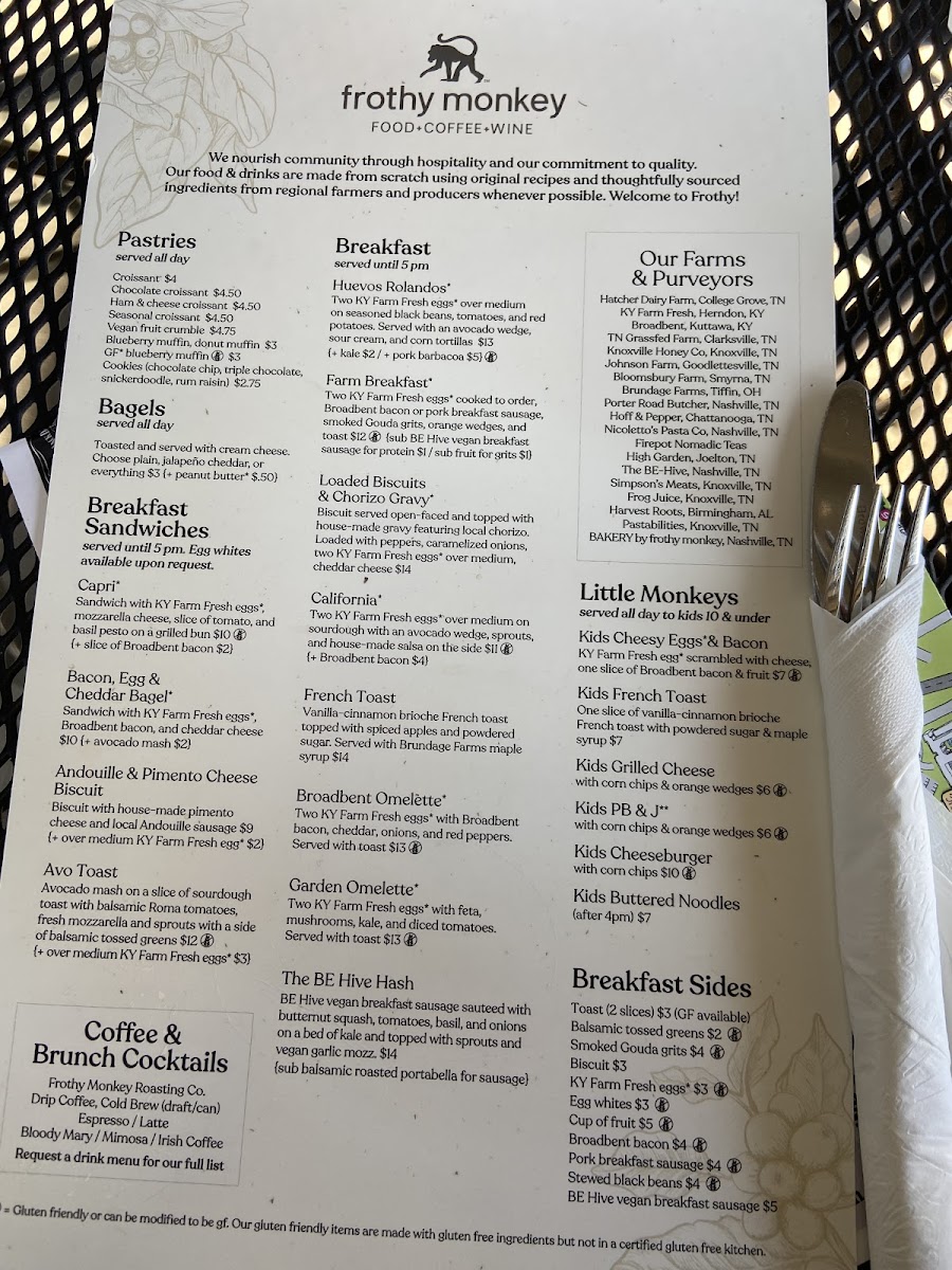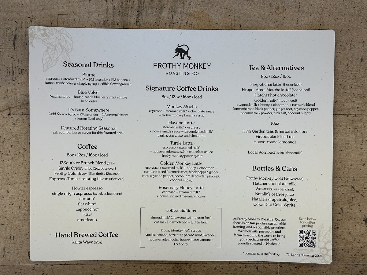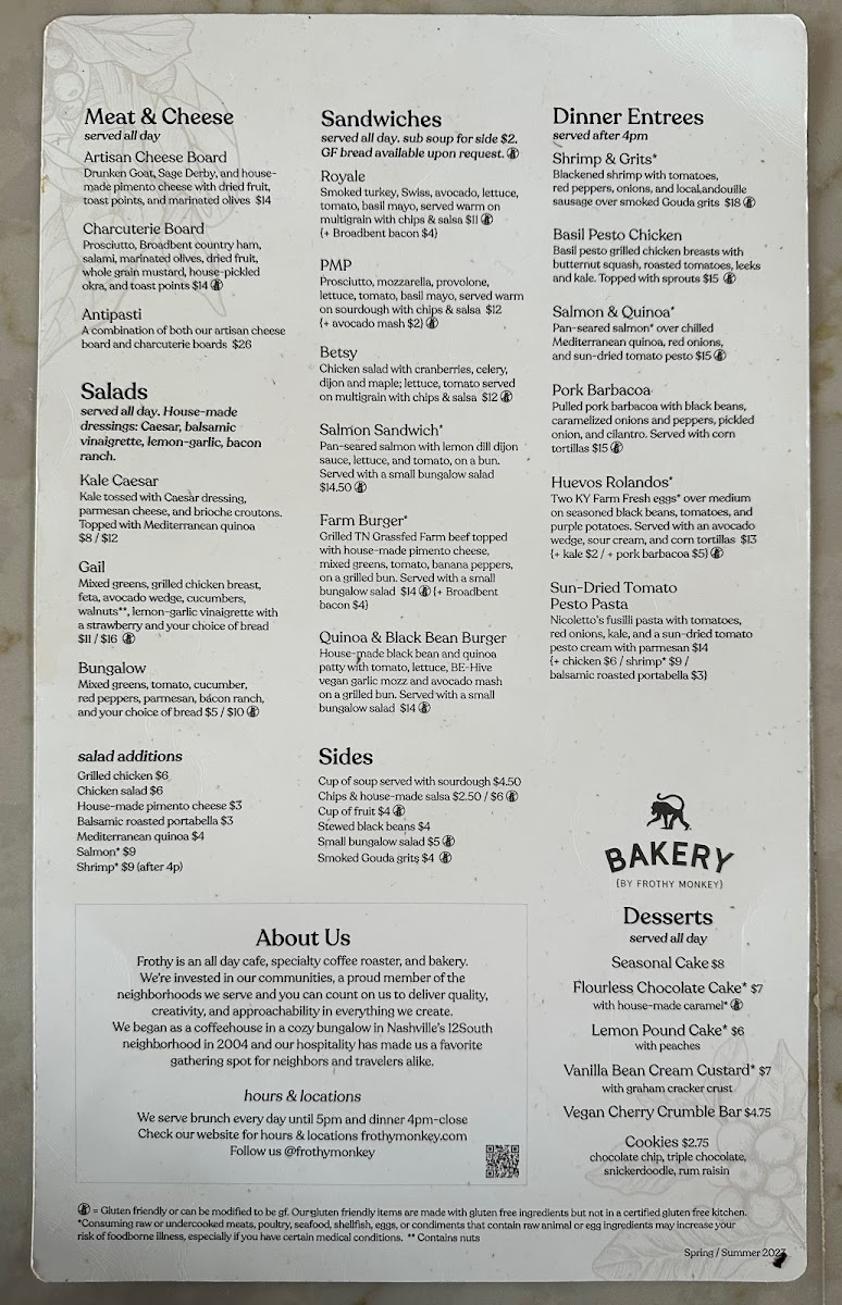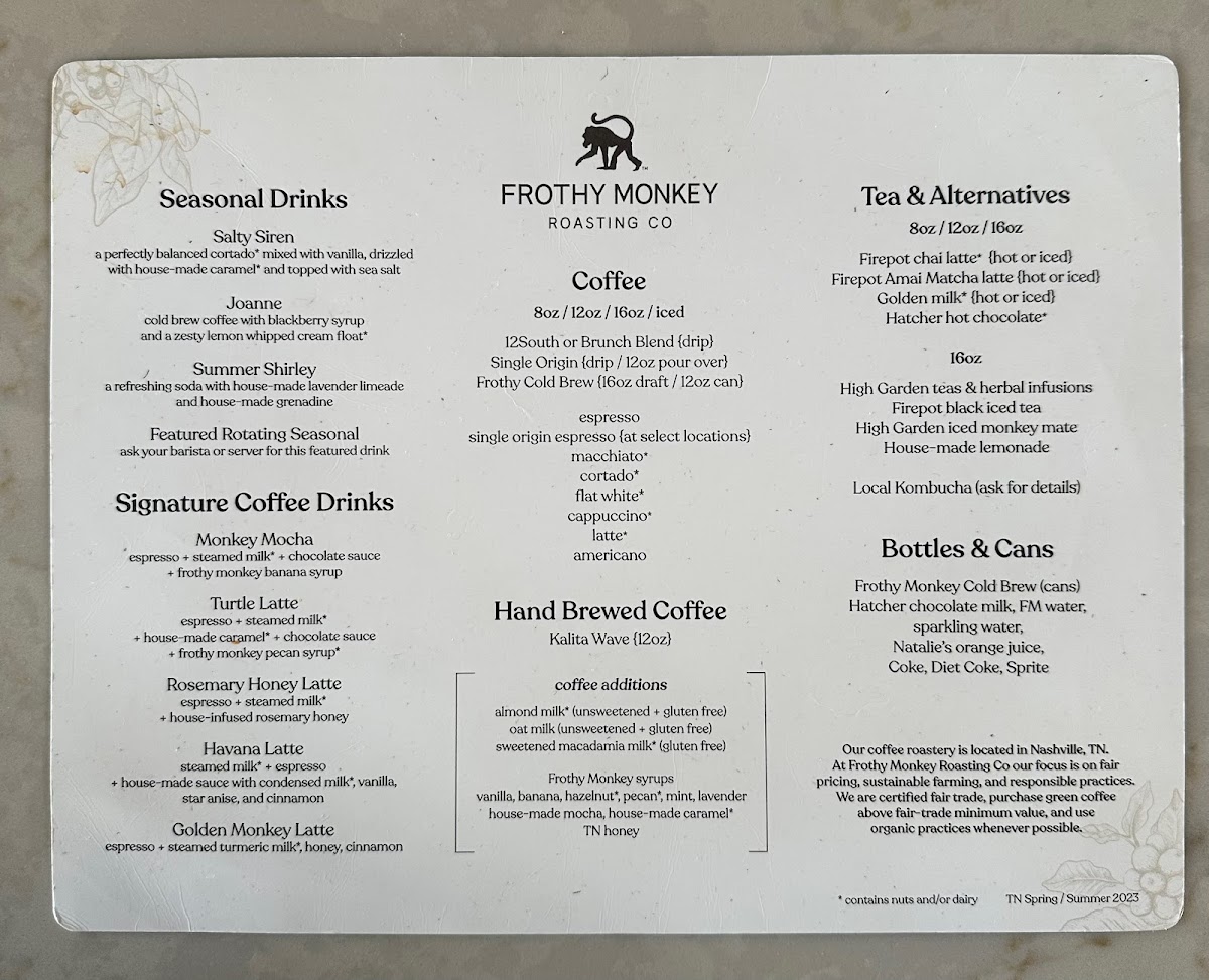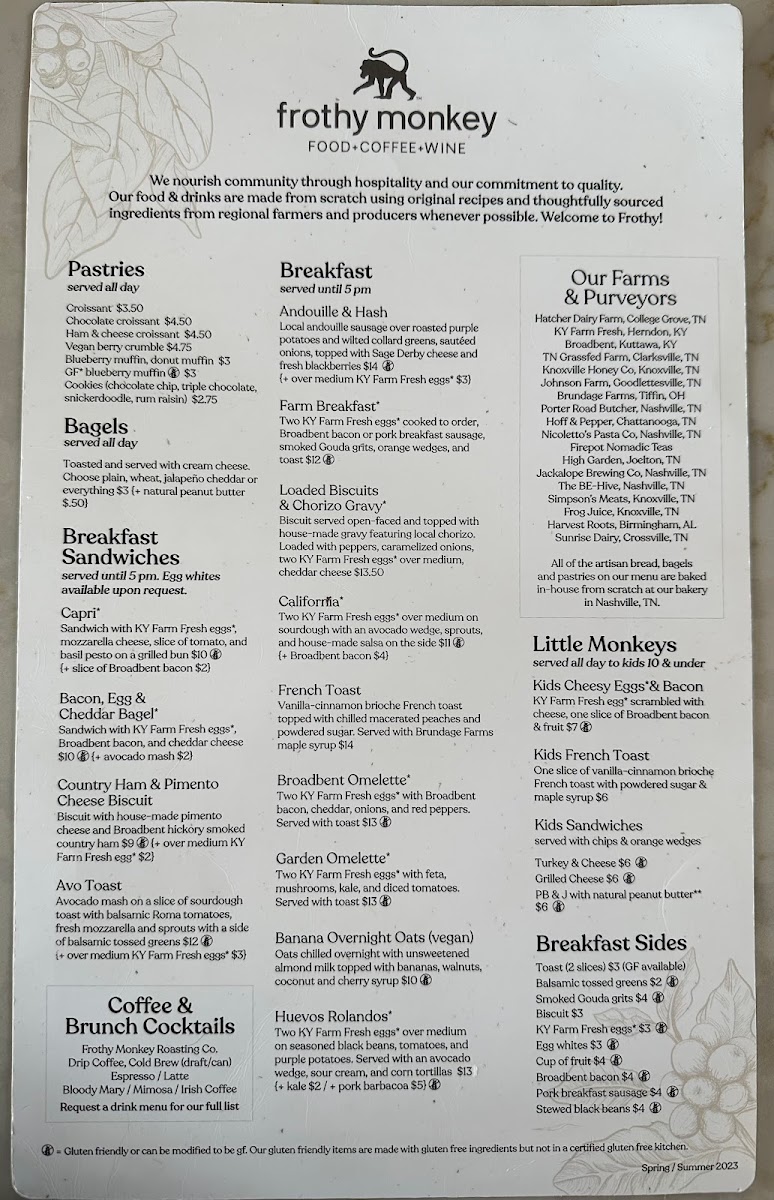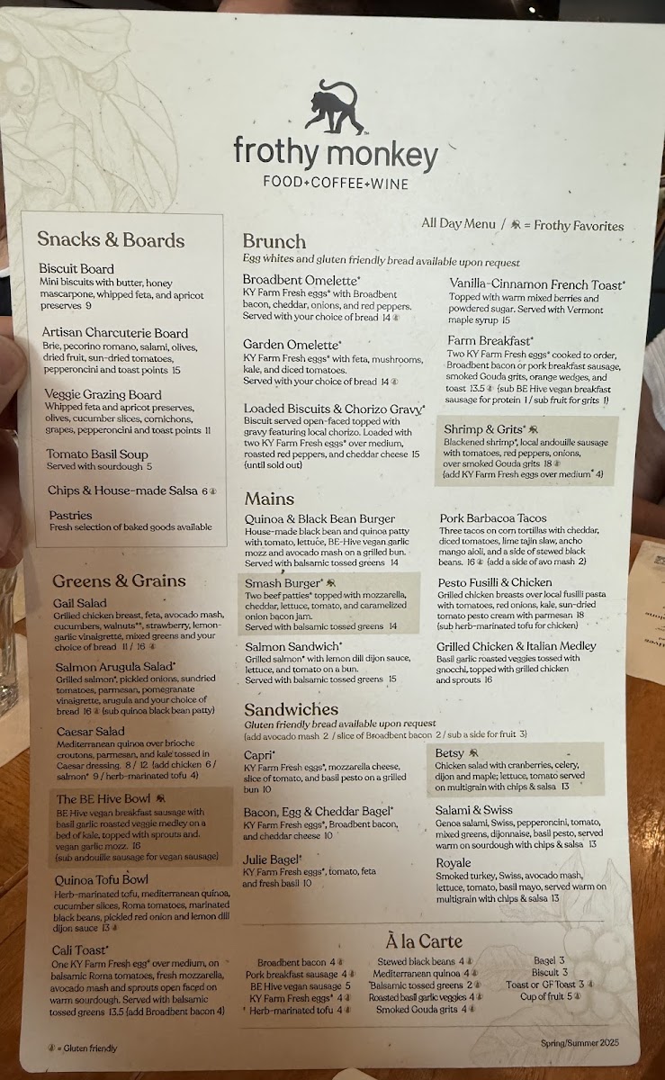 Frothy Monkey Menu (2025 Update)